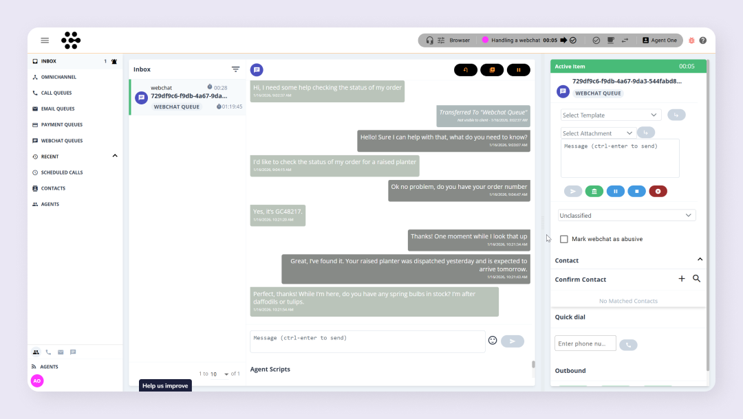 - A classification drop‑down to categorise the webchat (for example, a billing query)
