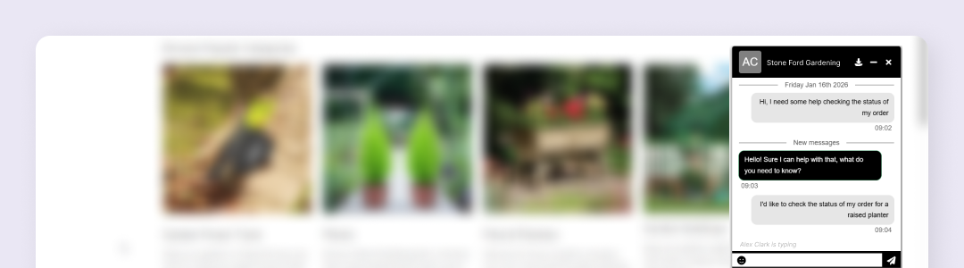You can then begin communicating with the customer. You can type responses into the message box in the active item dialogue or in the centre panel of your screen. Both you and the customer will be able to see when the other is typing so you are aware active communication is taking place.